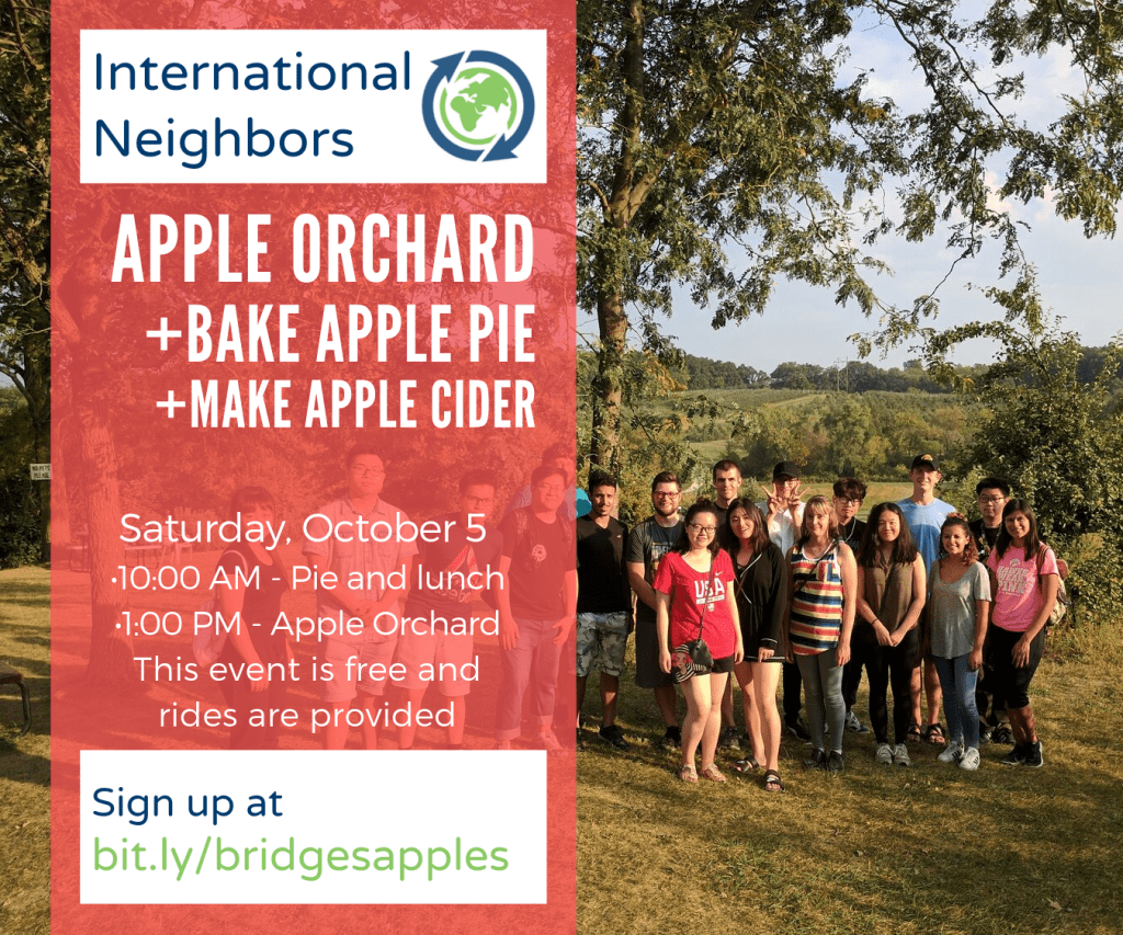 You’re invited to join us as we partner with International Neighbors at Iowa for a trip involving all things APPLES! See below for all the details! Sign up: