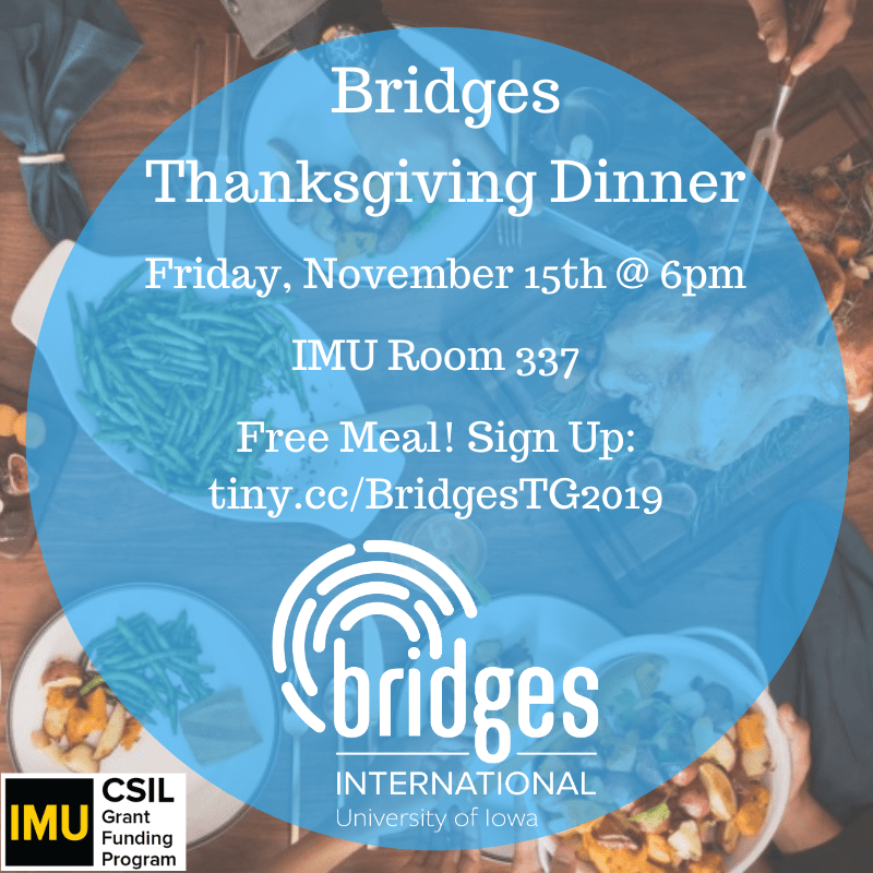 Mark your calendar’s for Friday, November 15th! We will be having our Thankgiving Event at 6pm in IMU Room 337. We will get to hear a message about the Thanksgiving tradition and Thankfulness, eat a free meal, and enjoy meeting new friends!