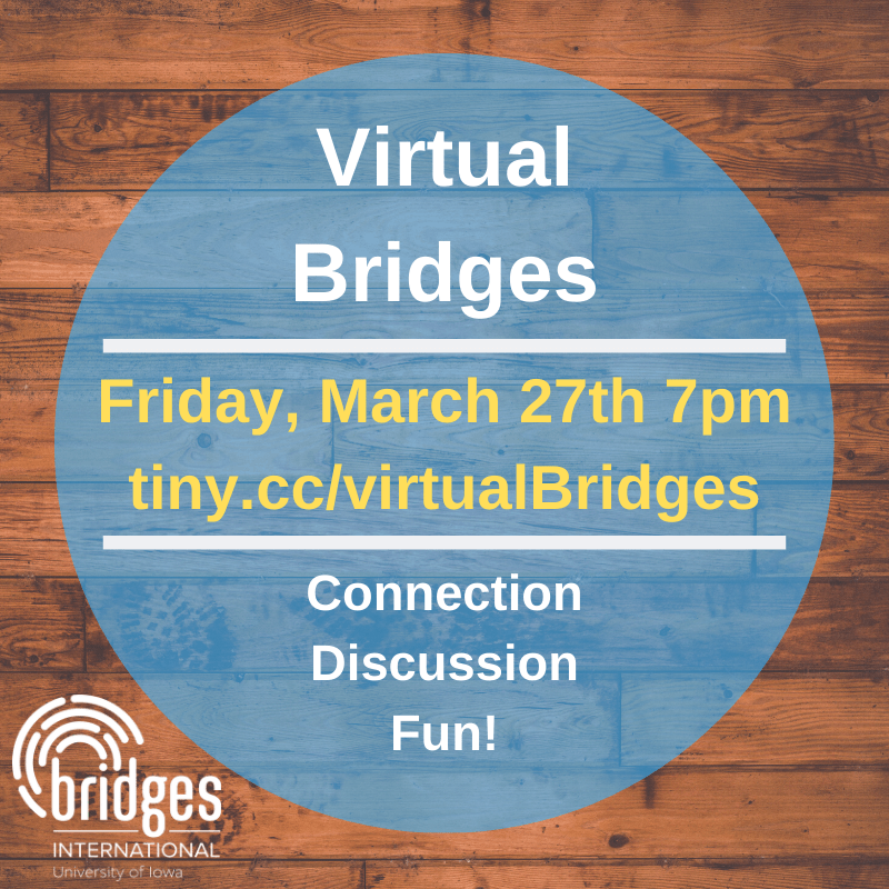 Are you bored? Desiring connection with fellow students? Bridges is moving online! Join us as we connect with one another, have some time for fun and watch/discuss a couple short videos.