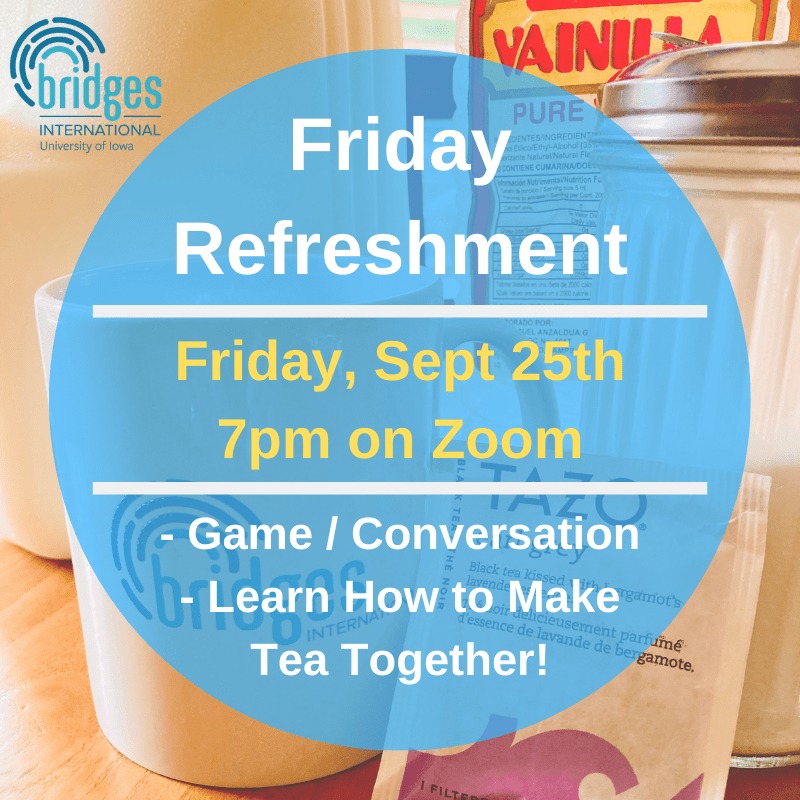 You’re invited to join us this Friday, September 25th at 7pm for our “Friday Refreshment.” We’ll enjoy a game together, discuss what is refreshing to us and get to learn how to make some refreshing drinks!