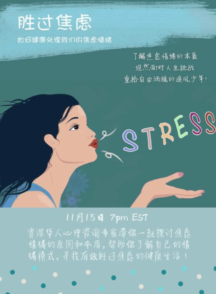 We want to invite Mandarin speaking students to join a national Bridges International seminar this Sunday, Nov. 15 at 6PM CENTRAL TIME on Overcoming Stress. Agnes Wang, MA in Counseling, will be sharing on how to understand sources of anxiety and how to overcome them in healthy and effective ways. If you are interested in joining the seminar, please email us for the link at uofiowabridges@gmail.com